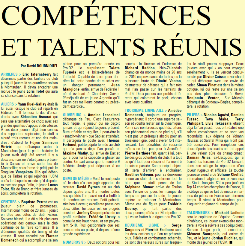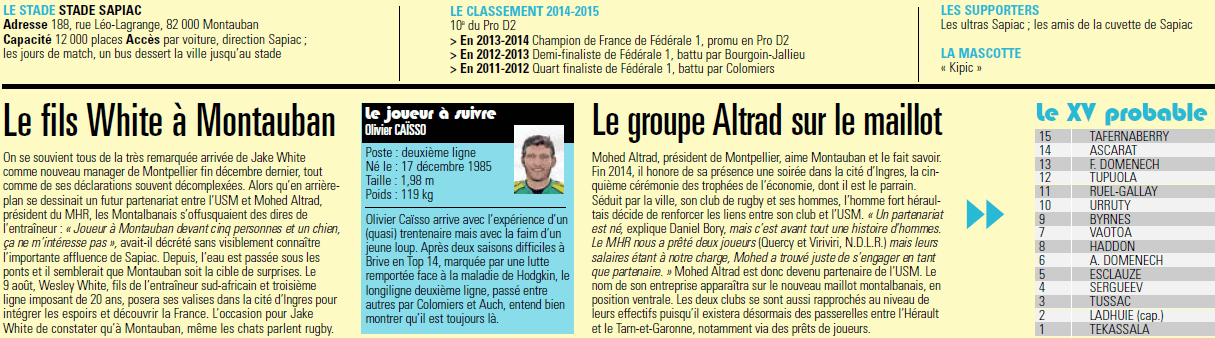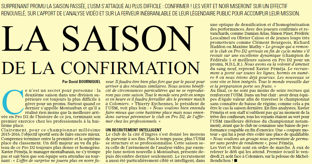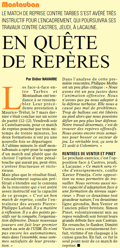Le midol du 3 août 2015 : compte rendu du match amical Tarbes/USM et présentation de l’équipe.