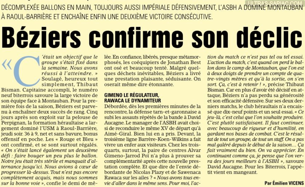 Le midol du lundi 23 novembre 2020 après Béziers / USM.